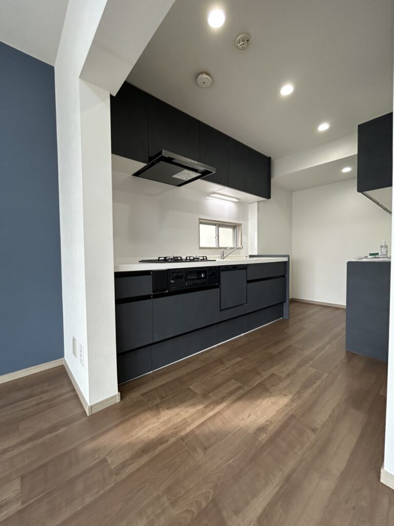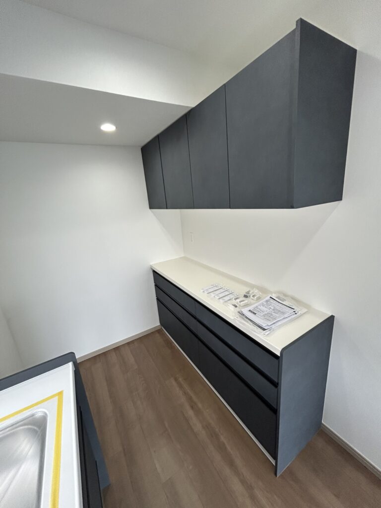 キッチンは、窓がついており明るいですよ、またキッチン背面にはカップボードを設置したので収納もしっかり確保です!