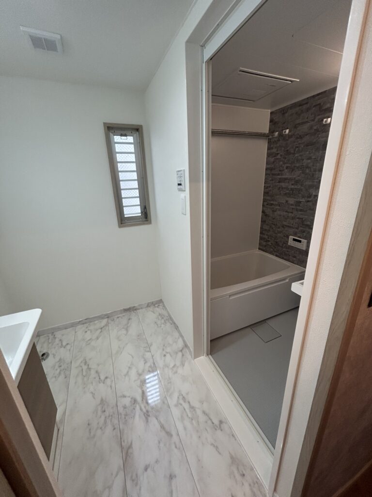 床部分は大理石風を採用、光沢のある床は掃除しやすいですし何より汚れも目立ちにくいですね!