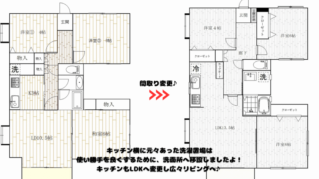 キッチン脇には元々和室があったのですが、洋室へと変更し押入はクローゼットへと変わっております♪